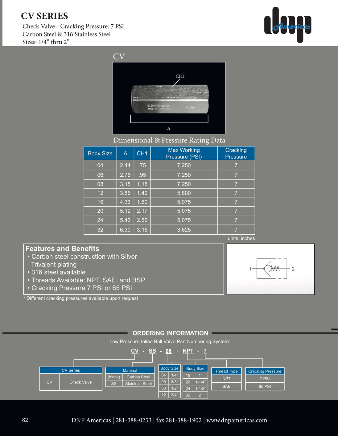 1/4" Check Valve, Stainless steel, 1/4" female BSP threads, 7psi cracking