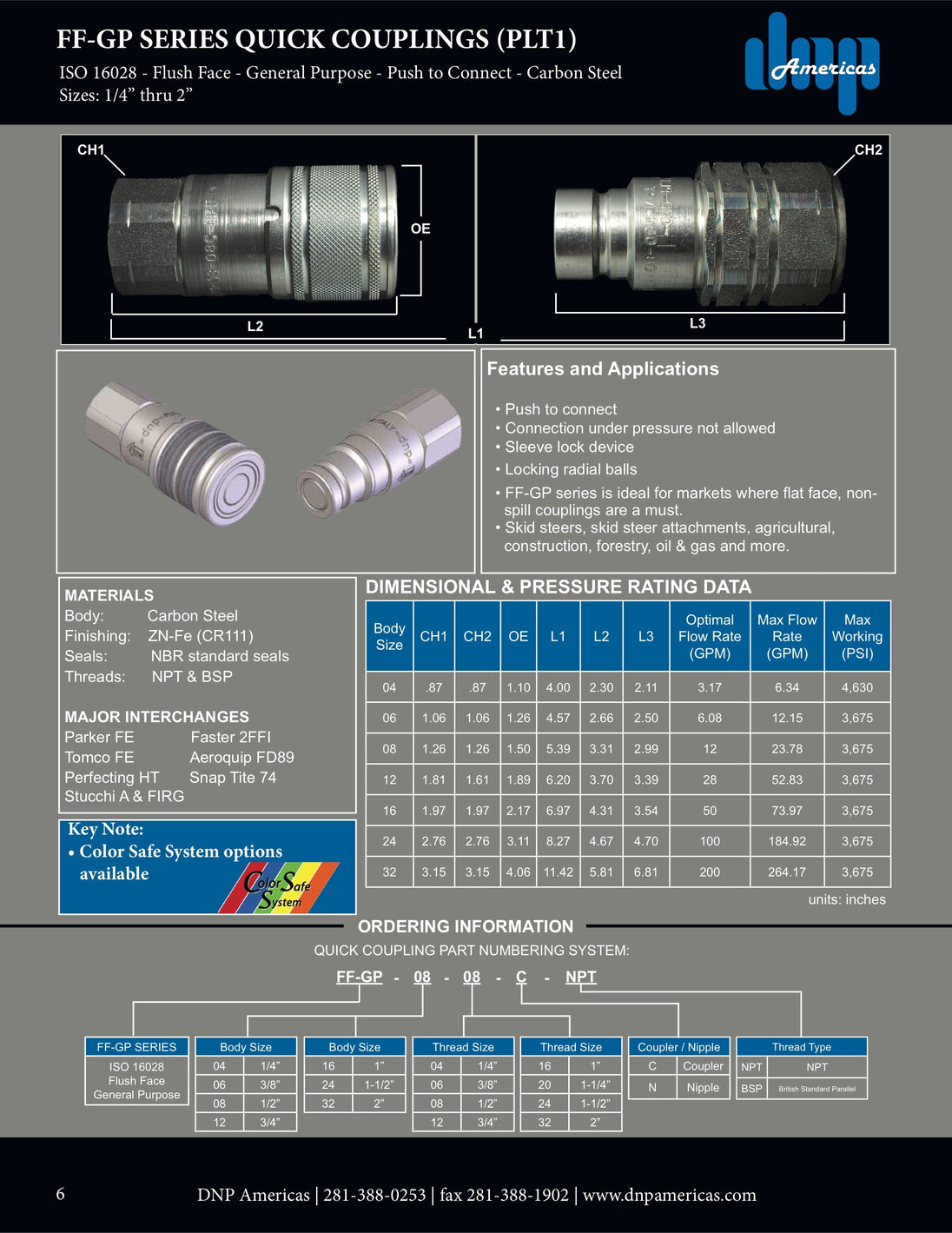 1/4" Flat Face Nipple with 1/4" Female NPT Threads, General Purpose