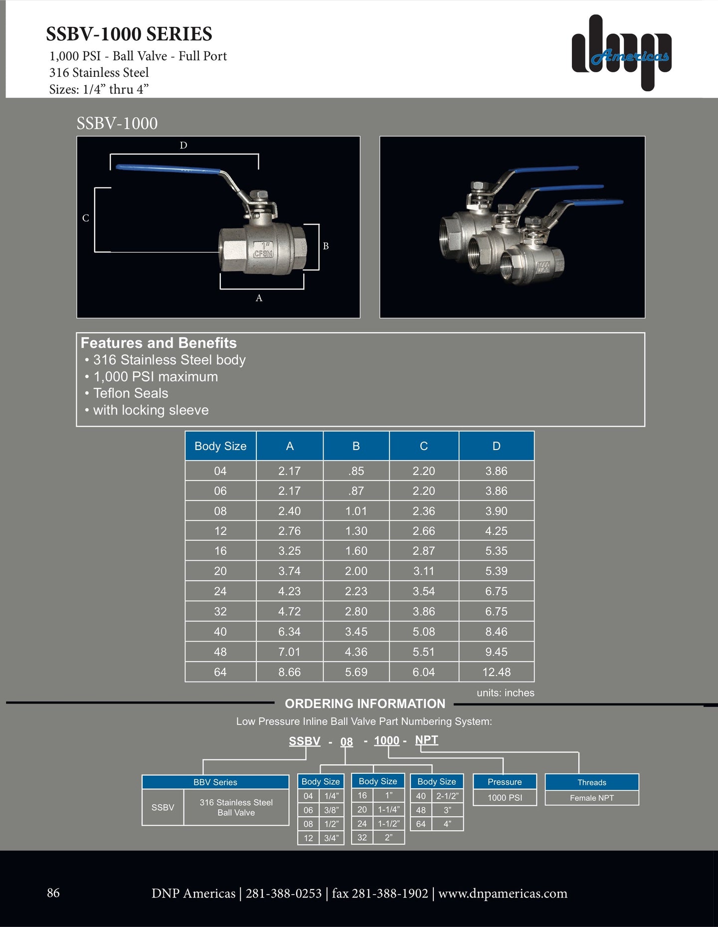 2 1/2" Stainless Ball Valve with 2 1/2" Female NPT, 1, 000PSI, Locking Handles