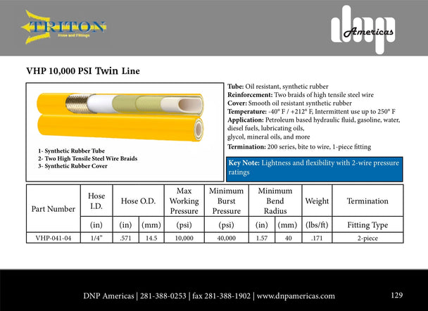 VHP-141-04-Y Ultra High Pressure Hose, DNP Americas