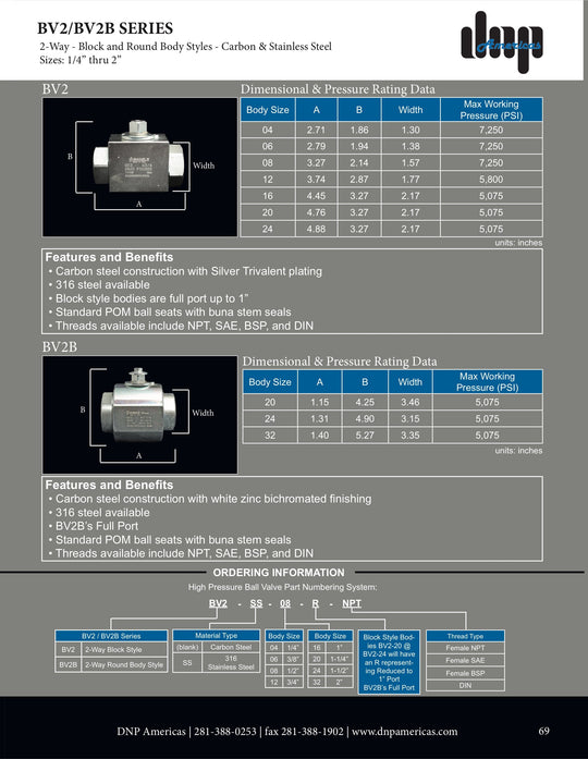 BV2B-20-BSP DNP Americas High Pressure Ball Valve
