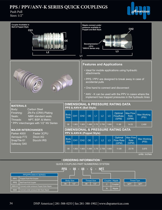 PPV3-08-16S-BH-C DNP Americas Quick Coupling